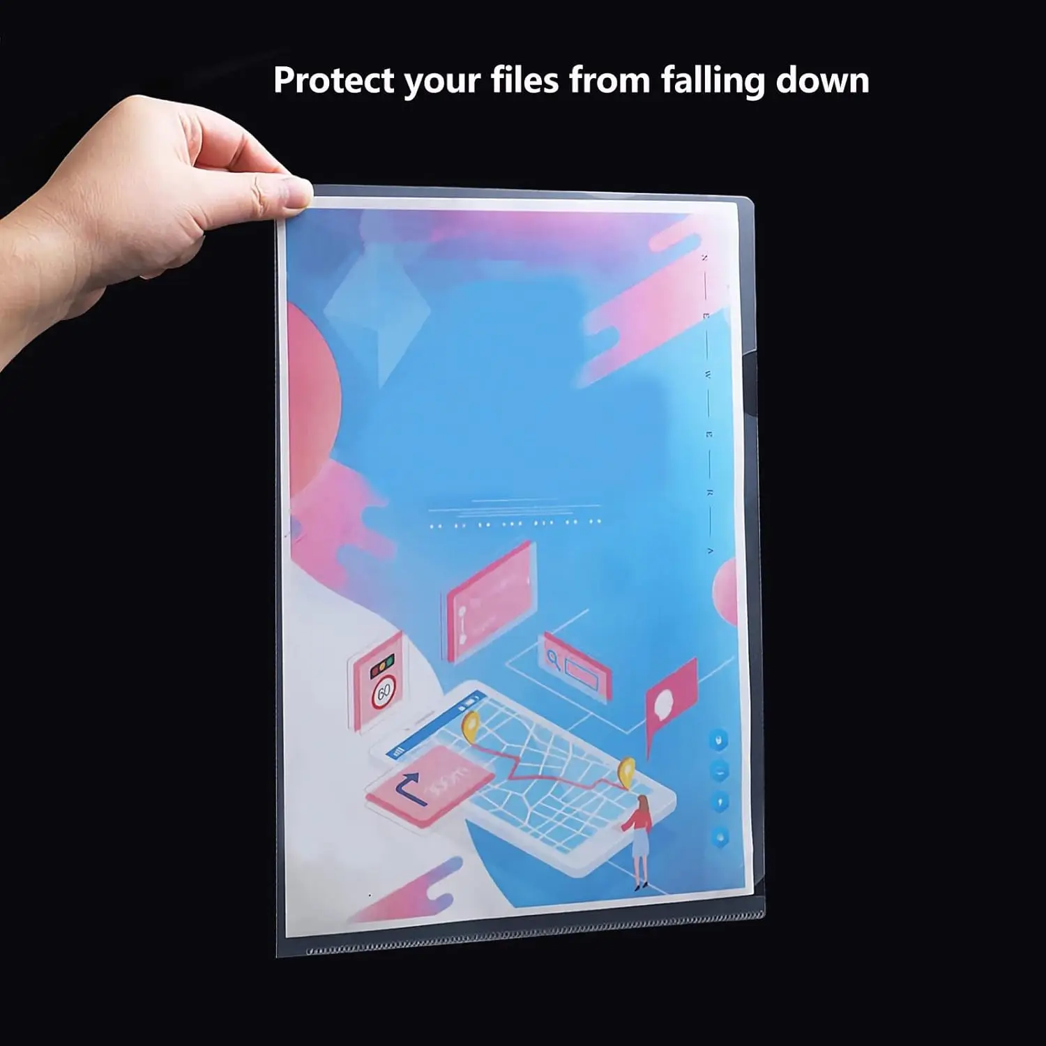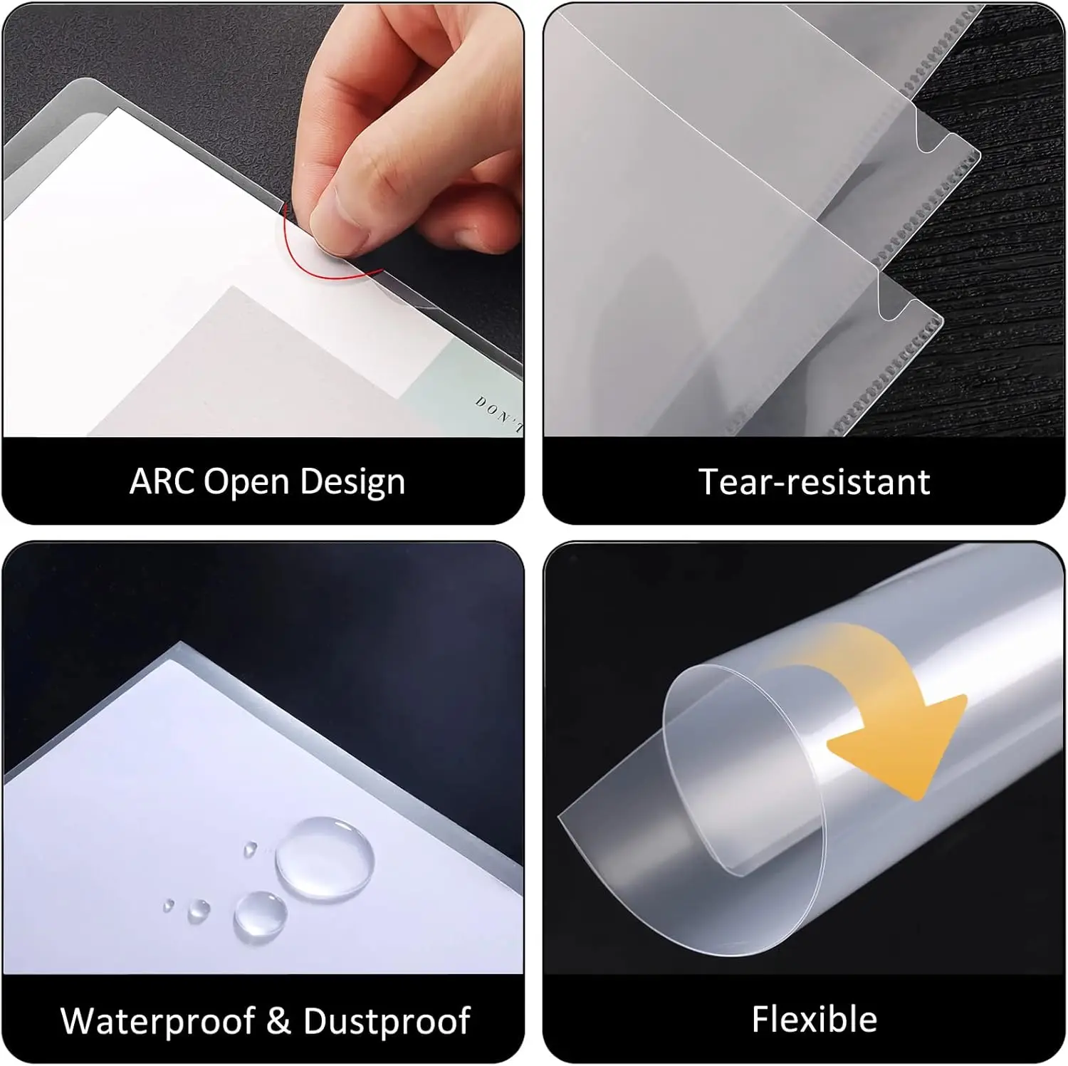 ✅ 【 L-Type Plastic Folders】- With L-type design ARC opening, sealed on two sides, open top and right (top and side-loading), easy to take out and put in your file,plastic folders with pockets also protect documents from tilting and falling.
