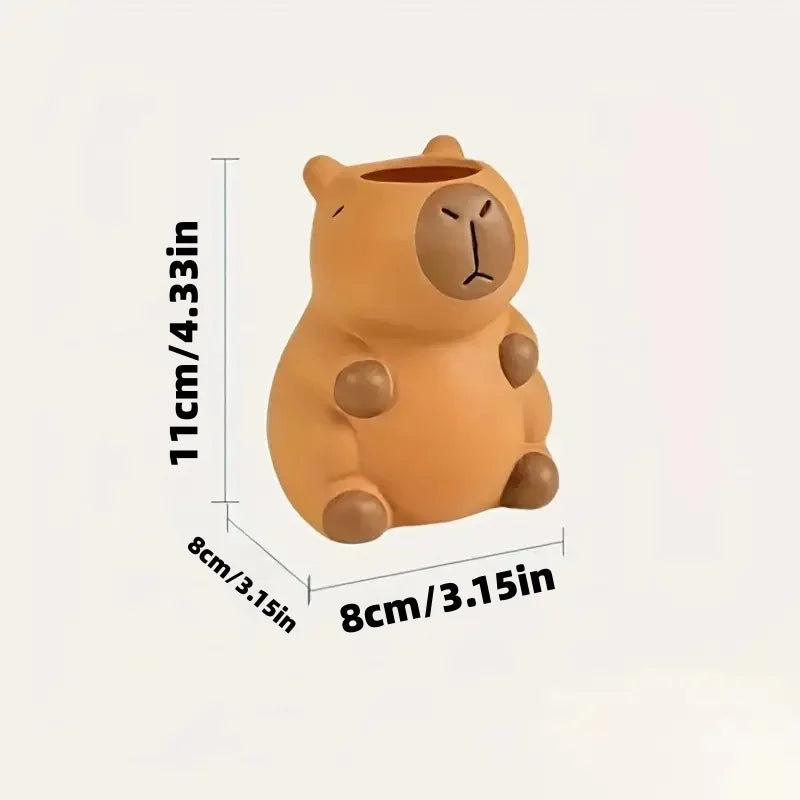 1 Piece Cute Capybara Pen Holder and Makeup Brush Organizer, Fun Design Rubber Desktop Decoration with Multiple Compartments for Office Supplies, Makeup Brushes, and Stationery Storage, Durable and Creative Home Office Desk A