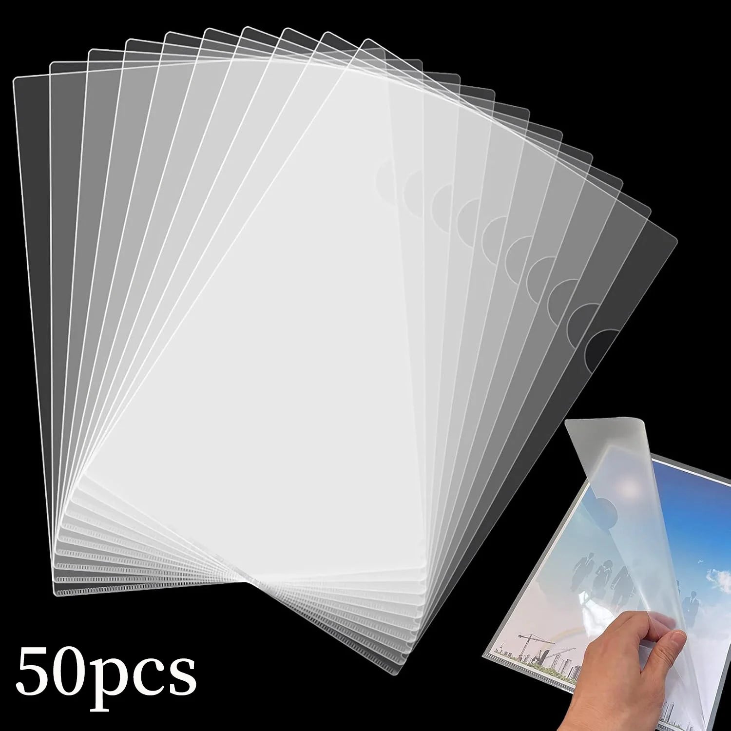 10-50 Pack Clear Folders for Document Plastic,L-Type Plastic File Clear Folders Letter Size, Transparent for Office & School
