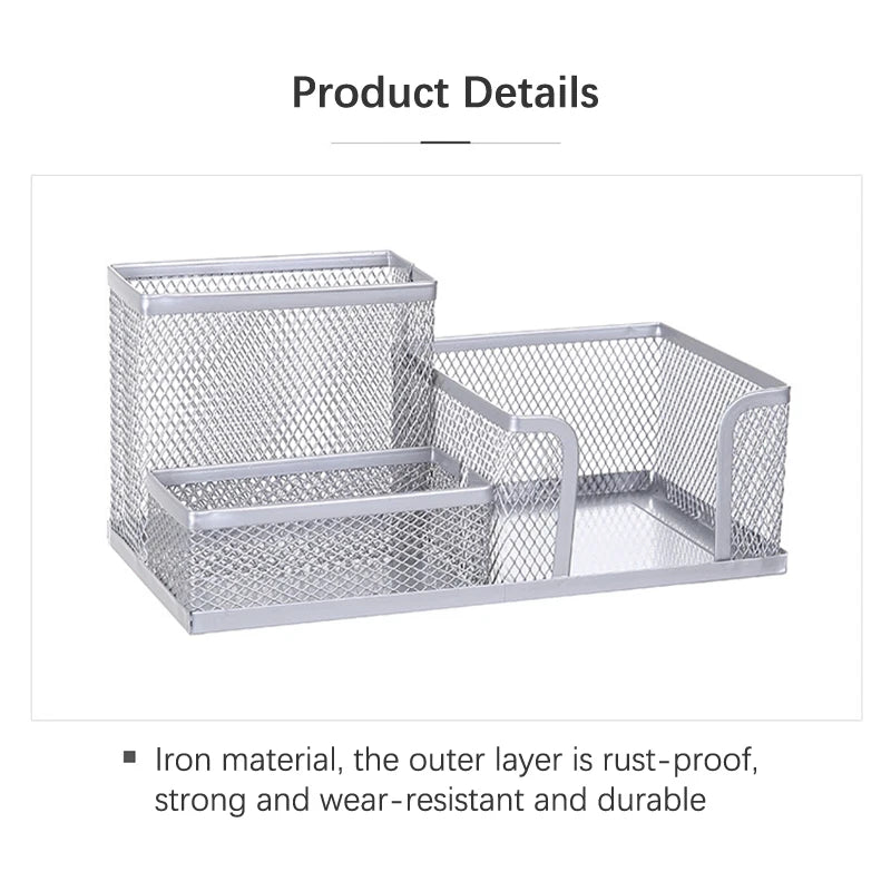 Product introduction: Iron pen holder, solid material, wear-resistant and durable, not easy to rust, compartmentalized design, classified storage, easy to take and use