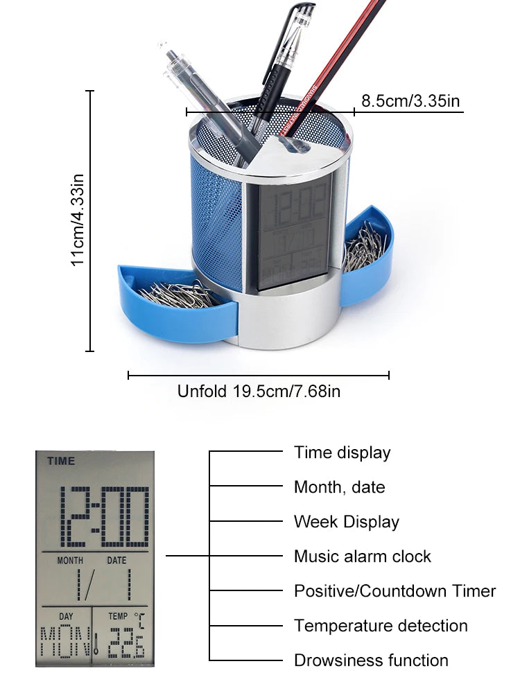Iron mesh circular perpetual calendar storage pen holder - clock alarm clock - temperature detection multi-function
